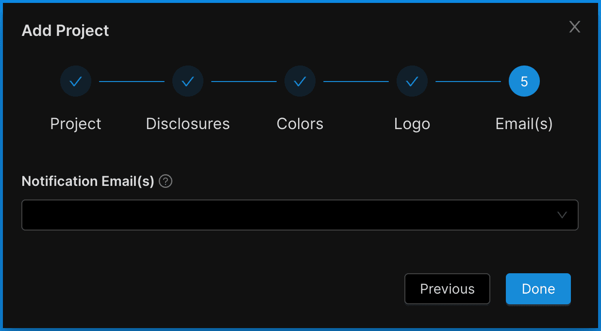 Step 6: Input Email Addresses for Project Notifications (Optional)