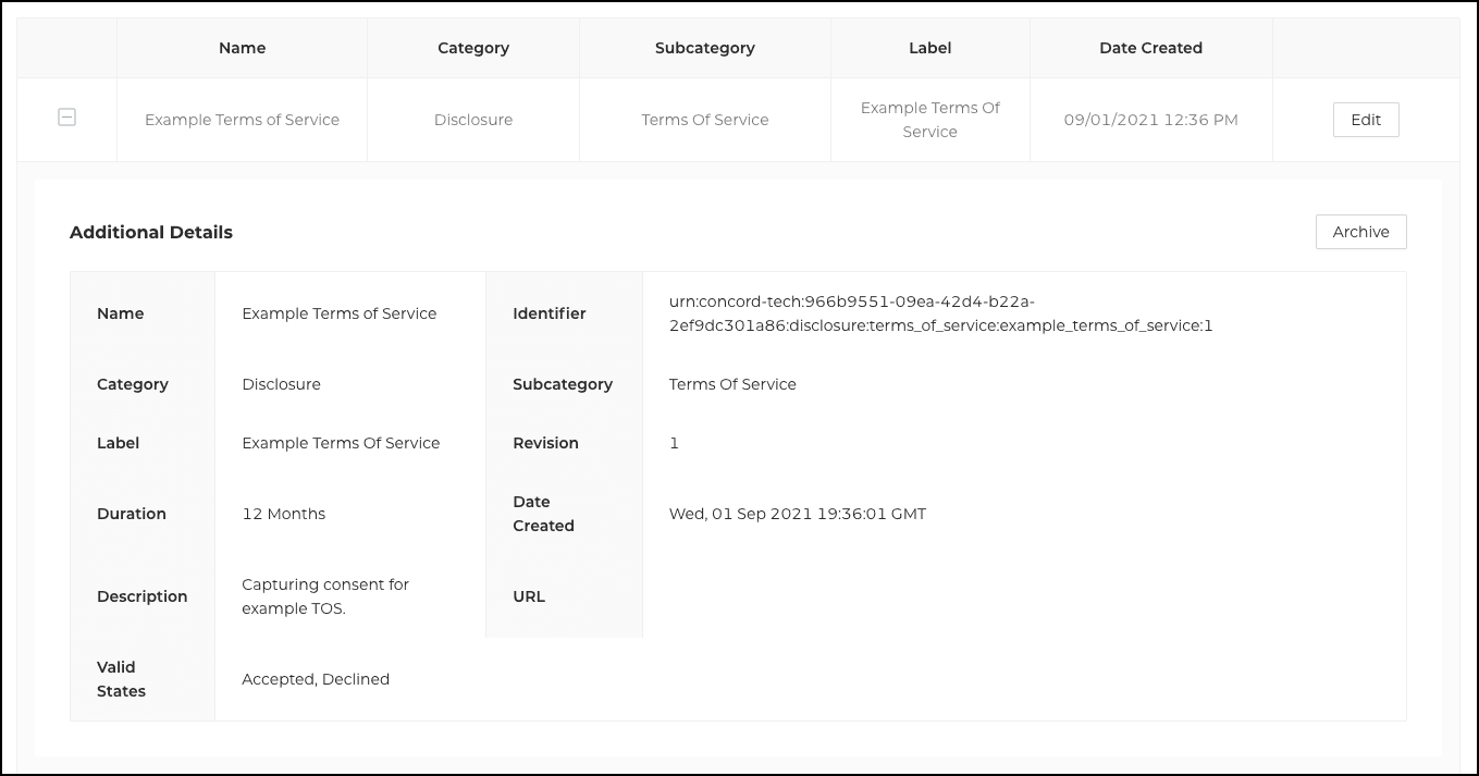 As noted above, Concord automatically captures Implied Consent Events for your website Privacy Policy on each of your projects. The first implied Consent Type is automatically generated when configuring your first project and is the only one you need in most cases. More details on standard privacy policy events or adding additional Implied Consent Events for disclosure based consent can be found here: