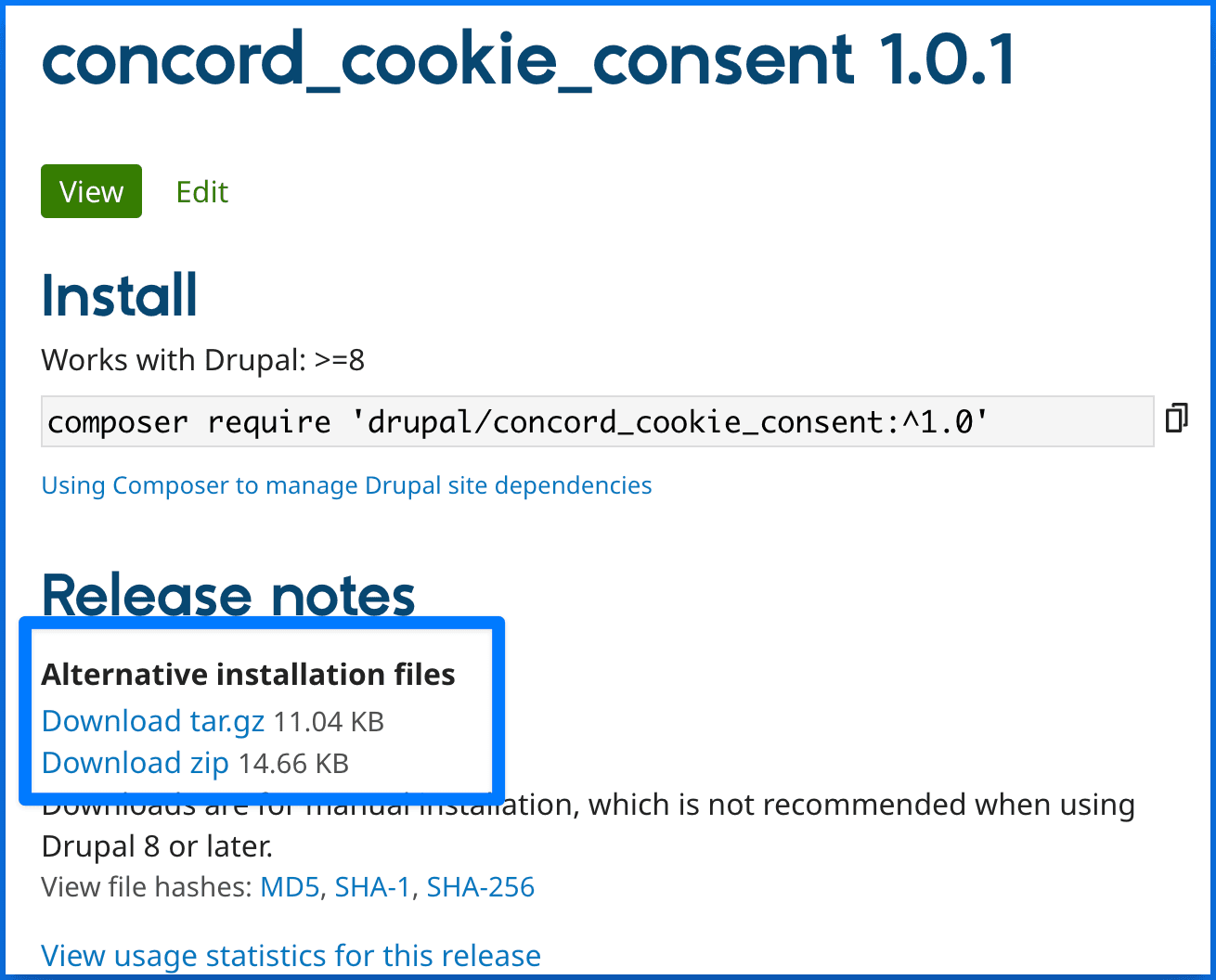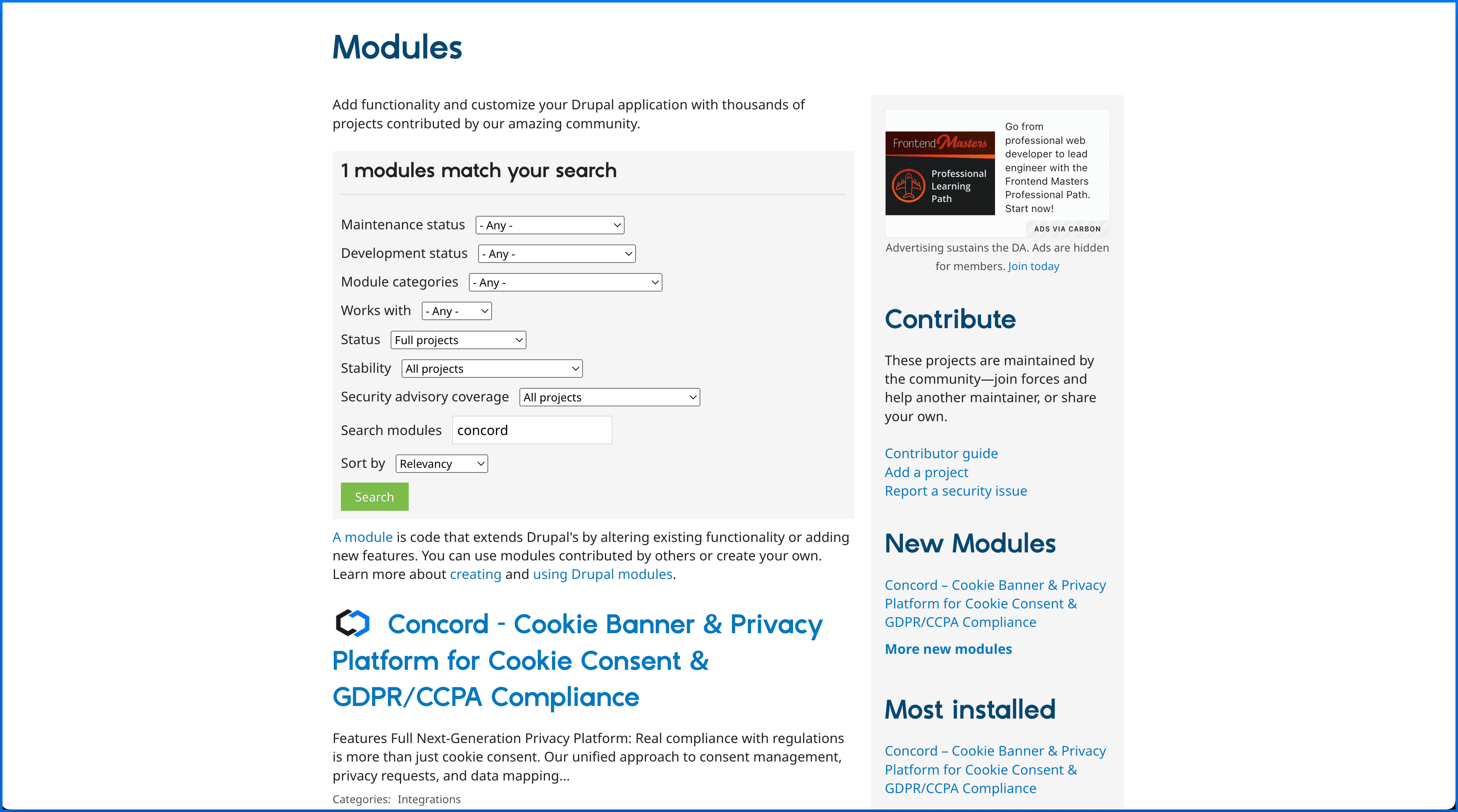 - Go to the Concord listing page on the Drupal Website or search for Concord in the Drupal Modules section to locate Concord: Concord Drupal Plugin/Module