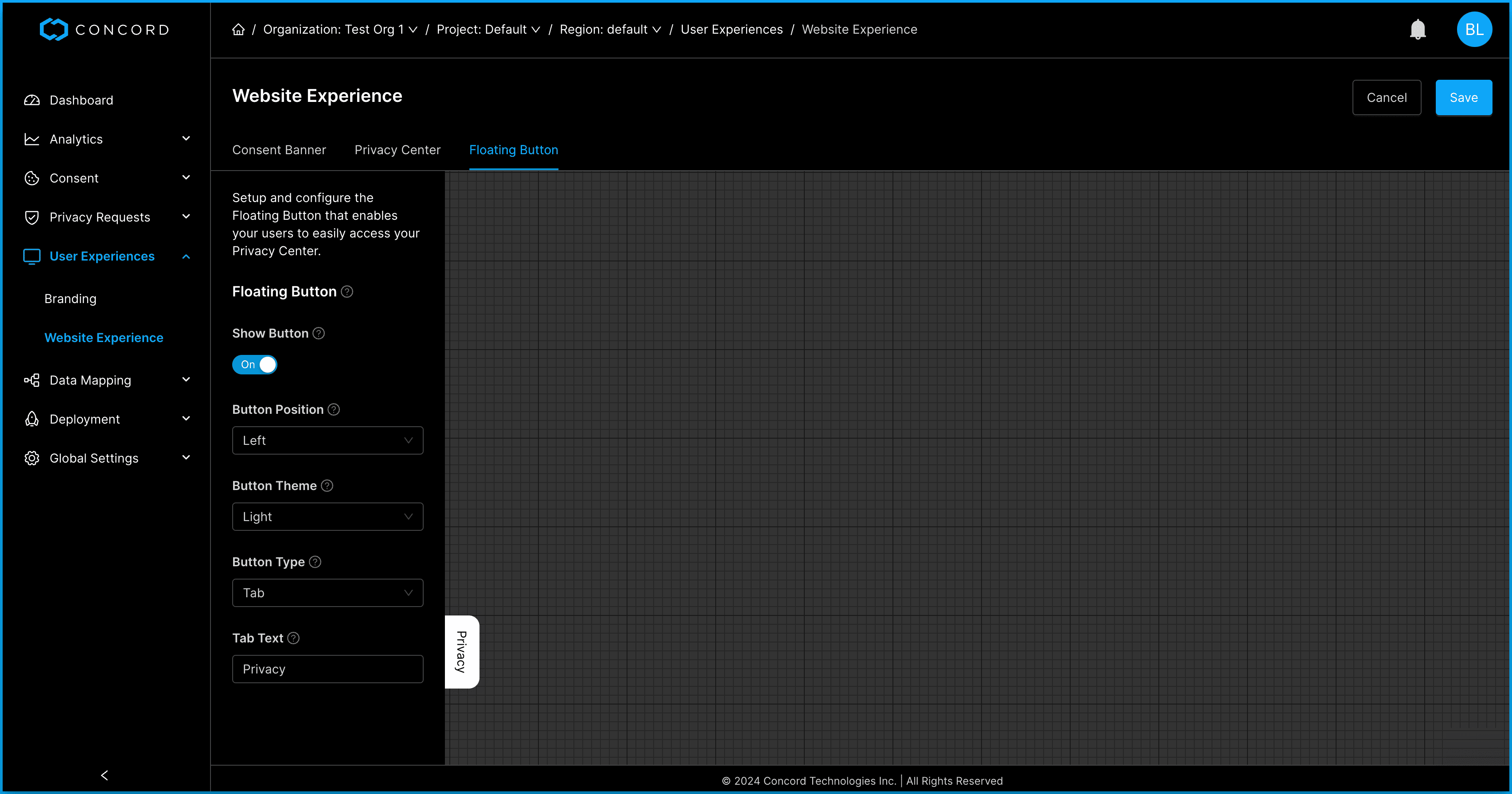 Configuring How Users Access the Privacy Center Through a Floating Button