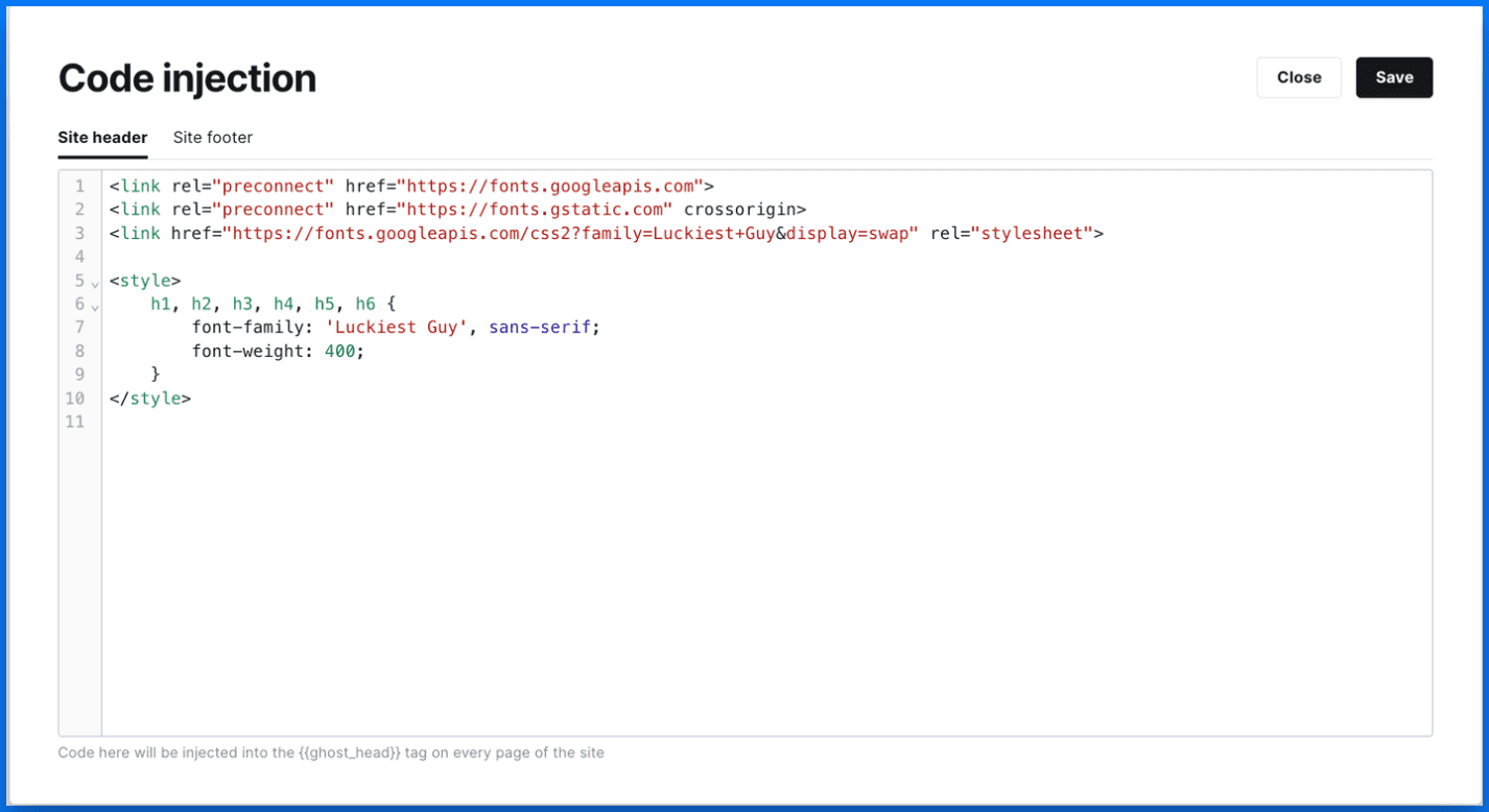 Paste the Concord script that you copied above into the Site Header section at the very top