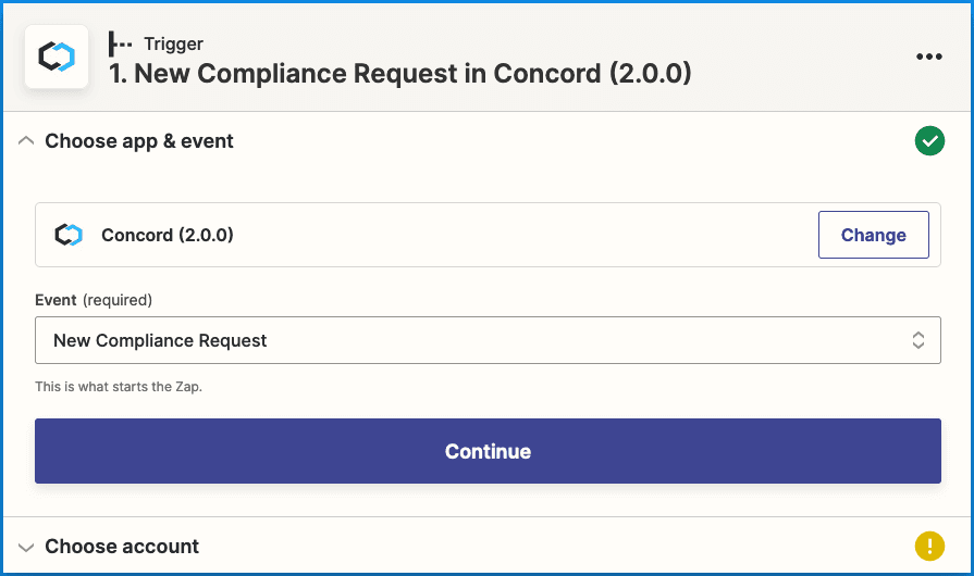 - Click Continue to set up your Concord trigger.