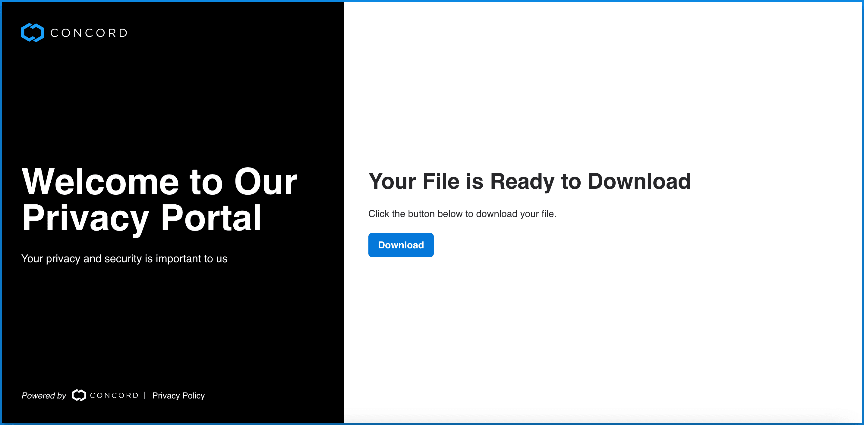 When the the user clicks the link in the email, they will be taken to Concord secure Privacy Portal where they can download a copy of their data.